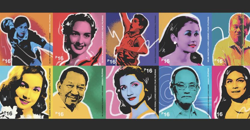 The stamp line, dubbed “Living Legends – Outstanding Filipinos: Series I,” is based on the theme “Salamat: Pagpupugay sa mga Alamat” (Thank You: A Salute to Legends). The stamps themselves depict pop art portraits of the featured artists, athletes, and scientists. Here is a list of the local talent they honored.