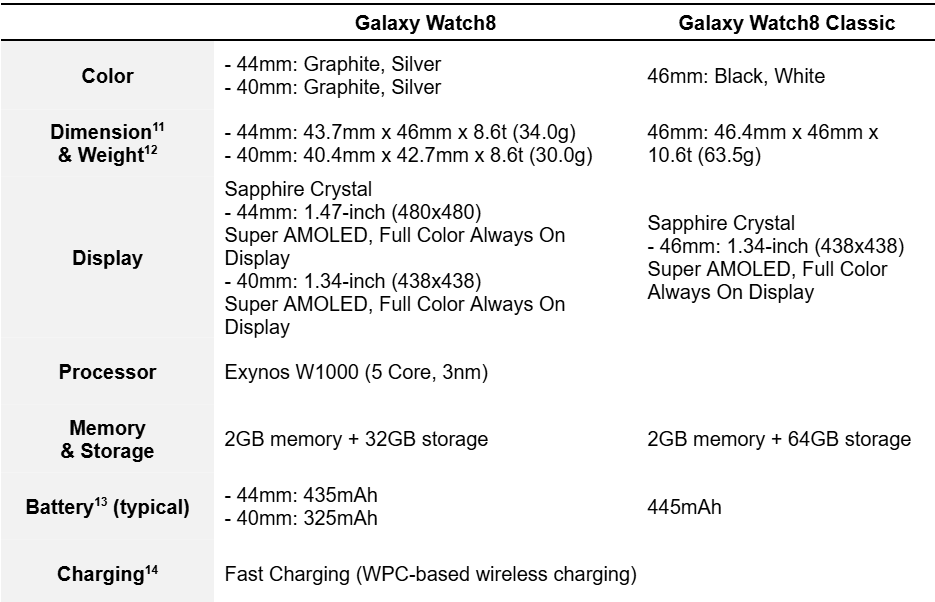 Galaxy Watch8 Series Specifications
