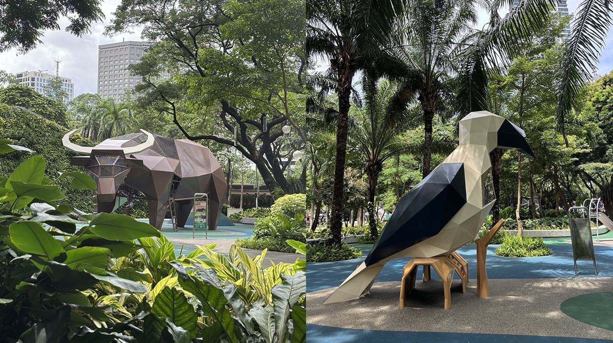 Ayala Triangle just got an upgrade on its public grounds, featuring an origami-like play pen structure of a Philippine Carabao and Hornbill. The dedicated space serves as a new addition to the play area of the park, while decorating it with a welcome view.