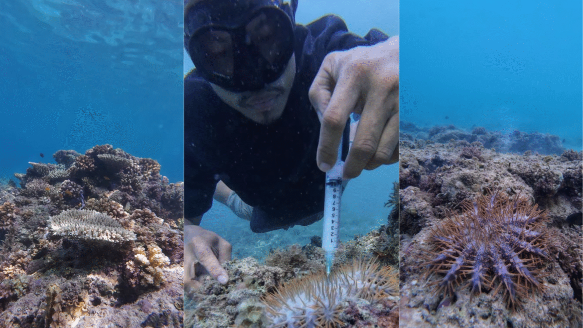 “This method is widely used by conservation groups because it’s effective and doesn’t harm corals or other marine life,” said Jomio in a video post, as he demonstrated the injection process that they use to curb the outbreak.